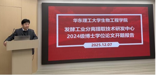 12月7日下午,中心2024级博士研究生开题报告会在学校举行。2024级生物工程专业博士研究生牟嘉瑜、生物与医药专业博士研究生王乾和蒋国豪依次进行答辩汇报,分别从论文的选题意义、研究目的、研究内容、技术路线、创新点等方面展开了阐述。专家组对各课题的创新点、可行性等方面进行了评价,并提出了建设性意见和建议。经过评审小组讨论,评审专家一致同意通过三位博士研究生的开题报告。