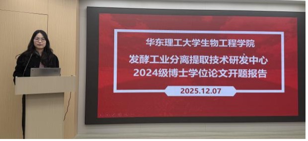 12月7日下午,中心2024级博士研究生开题报告会在学校举行。2024级生物工程专业博士研究生牟嘉瑜、生物与医药专业博士研究生王乾和蒋国豪依次进行答辩汇报,分别从论文的选题意义、研究目的、研究内容、技术路线、创新点等方面展开了阐述。专家组对各课题的创新点、可行性等方面进行了评价,并提出了建设性意见和建议。经过评审小组讨论,评审专家一致同意通过三位博士研究生的开题报告。